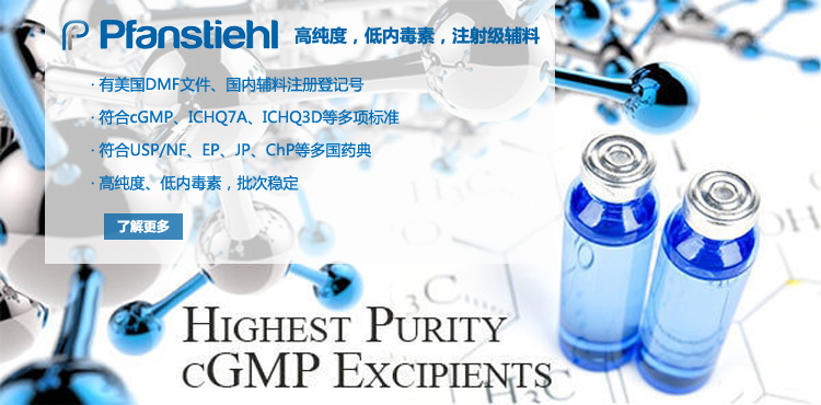 “熱烈祝賀Pfanstiehl的注射級甘氨酸Glycine(G-140)喜獲CDE登記號F20250000403, 這是Pfanstiehl產品獲得的第18個CDE登記號!”甘氨酸在醫藥輔料制劑中應用廣泛,, 可作為緩沖劑,增溶劑,穩定劑等,具有諸多優勢。Pfanstiehl秉承一貫高品質理念,為滿足全球生物制藥行業對于高品質甘氨酸的需求,隆重推出的注射級甘氨酸Glycine (G-140), 具有超高純度,超低內毒素,超低金屬殘留的特點,單獨檢測29種金屬離子,并且新增DNA,RNA,DNA酶,RNA酶和脂肪酶,亞硝酸鹽等多項質量指標的檢測,符合多國藥典規定(USP, EP, BP, JPE, ChP),可用于生物治療性藥物和疫苗的生產。產品信息:· 產品名稱:Glycine, High Purity, Low Endotoxin, Low Metals, USP, EP, BP, JPE, ChP (G-140)· 中文名稱:甘氨酸· 分子式:C2H5NO2· 分子量:75.07 g / mol· CAS號:56-40-6· 產品貨號:G-140產品特點: · 超高純度,超低內毒素,超低微生物含量,超低金屬雜質殘留· 質量指標新增DNA,RNA,DNA酶,RNA酶,脂肪酶和亞硝酸鹽檢測· 符合多國藥典:USP, EP, BP, JPE, ChP· 符合ICH Q3D標準· 符合GMP標準· 已獲DMF和CDE登記號 產品應用:· 緩沖劑· 穩定劑· 增溶劑如果您對Pfanstiehl注射級別Glycine G-140感興趣,歡迎聯系Pfanstiehl 中國區代理商北京西美杰科技有限公司獲得如下詳細的產品概況說明文件和測試樣品。Pfanstiehl Inc.最新產品系列如下,歡迎聯系北京西美杰科技有限公司獲取100g裝免費樣品。北京西美杰科技有限公司為Pfanstiehl中國代理,為客戶提供完善的技術支持與售后服務。歡迎撥打西美杰客服電話400-050-4006或者登陸網站www_xmjsci_com.huanongt.com了解更多信息。 更多>